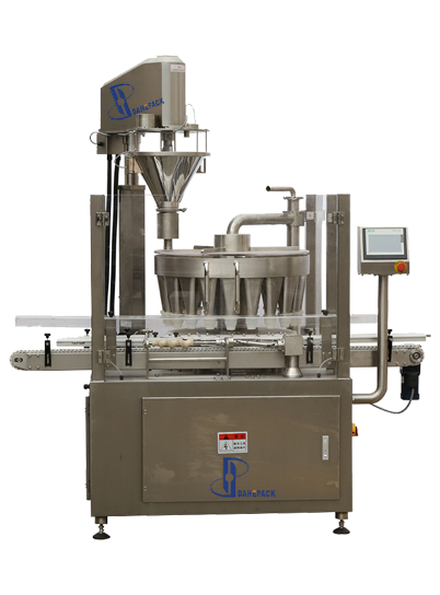 托瓶轉(zhuǎn)盤(pán)帶有振動(dòng),確保物料裝到瓶子里比較充實(shí)、不泡;