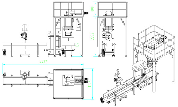 加配皮帶輸送機(jī)、縫包機(jī)、折邊機(jī)或熱合機(jī)等可以成為成套包裝系統(tǒng)。