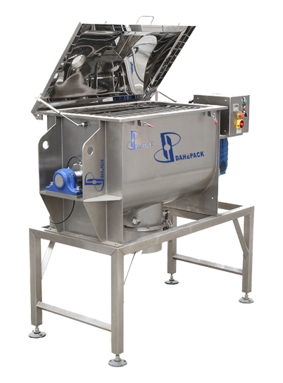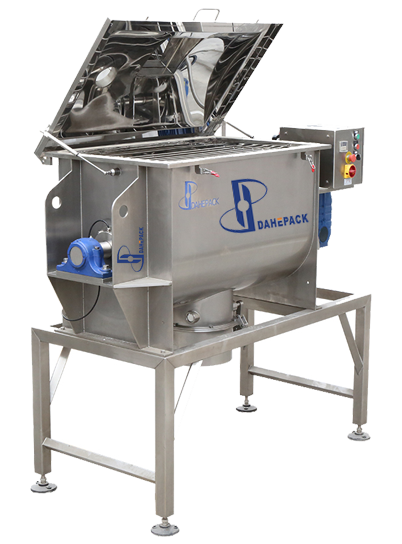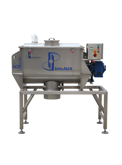 臥式螺帶混合機由U形容器、螺帶攪拌葉片和傳動部件組成;螺帶狀葉片為雙層結構,外層螺旋將物料從兩側向中央匯集,內層螺旋將物料從中央向兩側輸送,形成對流混合。 螺帶混合機對于粘性或有凝聚性的粉粒體的混合以及粉粒體中添加液體及糊狀物料的混合有良好的效果,筒蓋可做成全開式門,以便于對設備進行清洗更換產品。